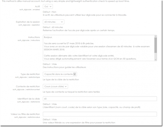 yes/no: No default. When enabled, the users can use their short digicode for quick access to moodle.