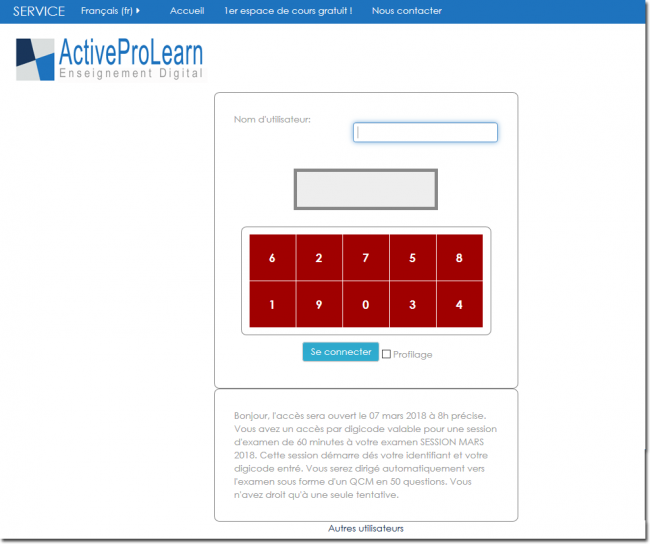 There is no direct use of this component, except the ability to a user for performance reasons, to connect to Moodle via standard login and password replaced by a digicode, to arrive directly on an internal page of moodle and under his identity.