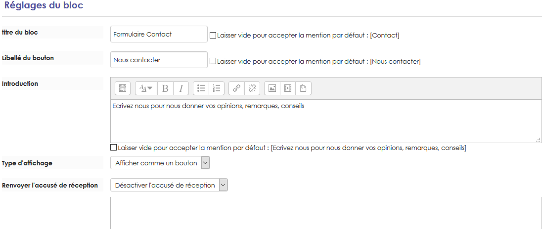Passer en mode Edition à l'aide du bouton sous votre nom de connexion. Menu déroulant Ajouter un bloc/formulaire contact.