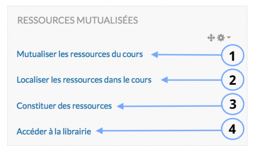 Le bloc Ressources mutualisées est généralement utilisée de pair avec l'activité Ressources mutualisées.