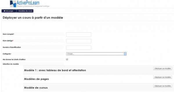 • Saisissez le nom du nouveau cours qui sera déployé selon le modèle sélectionné.
