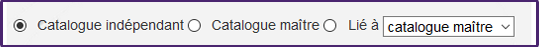Définissez ensuite un ou plusieurs catalogues comme esclaves du catalogue maitre, en choisissant la liaison au catalogue maître de votre choix pour le catalogue que vous créez ou modifiez, et cliquez sur la puce lié à :