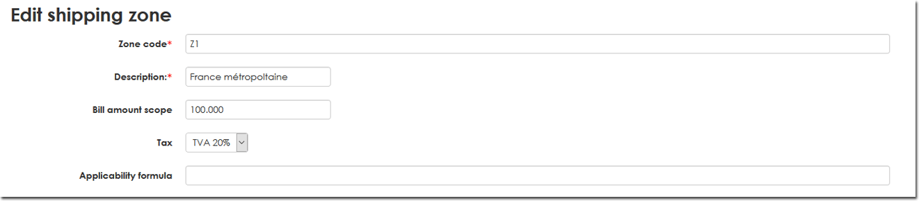 C'est via ce menu que l'ont va gérer la création des frais de port qui seront disponibles ensuite pour les différents produits.