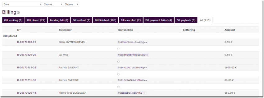 Les factures placées sont des bons de commande non encore confirmées par les utilisateurs. Si une facture reste en état placée et ne change pas d'état ensuite, cela signifie que la transaction s'est arrêtée à l interface de paiement, sans que le client aille au delà.