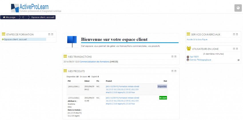 Ce compte client sera rattaché à un compte utilisateur si un achat est arrivé à son terme. Le compte utilisateur créé permet au client de bénéficier de certains services comme l'accès à un espace de support client identifié (un cours spécial organisé pour fournir le support client).