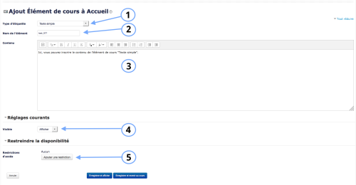 3. Le texte que vous inscrivez dans cet encadré sera le texte que vous verrez apparaitre dans le cours.