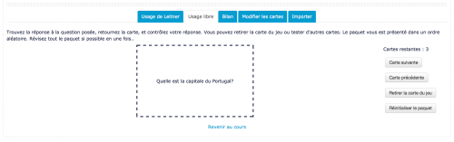 Retour au guide d'utilisation - Retour à l'index du module Flashcard - Revenir à l'index des plugins - Revenir au catalogue