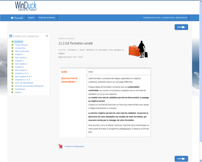 Exemple de rendu d'une page de couverture de cours avec le lien page suivante seulement