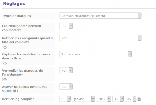 Moodle enregistre des traces datées mais ne rend pas compte de “temps passés”. Rien n'est fourni en natif pour gérer une quantification de l'apprentissage en temps et pour effectuer les sortes administratives attendues par cette quantification.