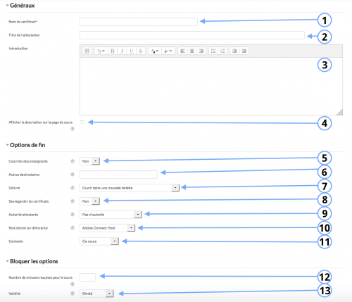 1. Il s'agit du nom du certificat qui apparaitra sur la page de cours.