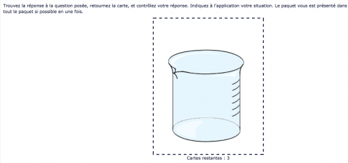 Sur la face de la carte, on trouve une image d'un bécher. L'apprenant doit associer le nom qui correspond à l'image.