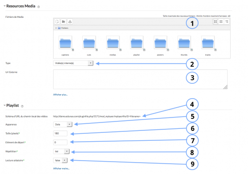 1. Ce réglage gère un container structuré des “fichiers de média” qui alimentent les fonctions du player, soit de manière globale, soit pour chaque clip.