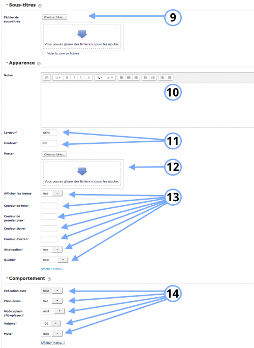 13. Tous ces paramètres permettent de définir certain critères de la vidéo.
